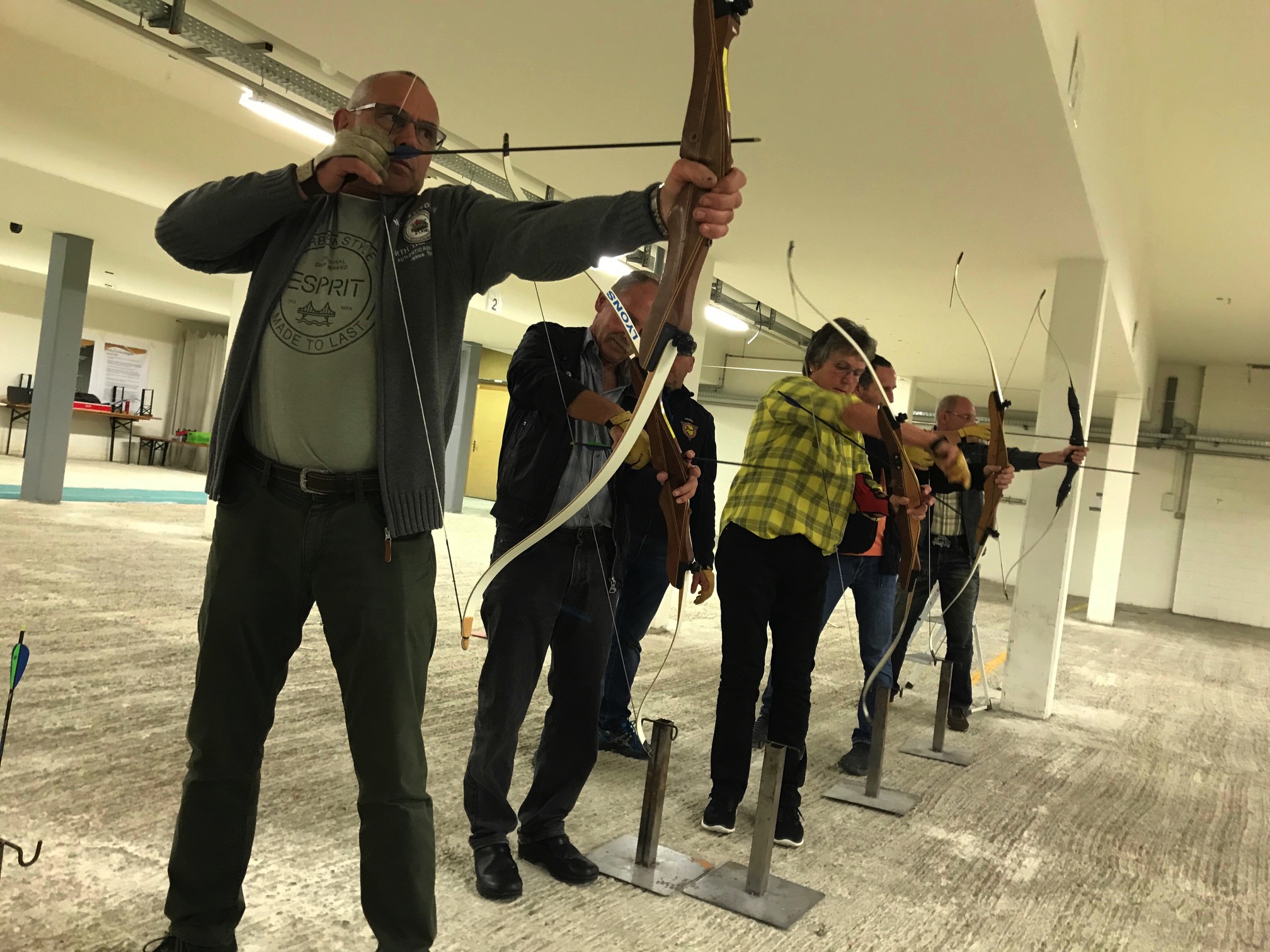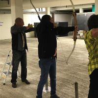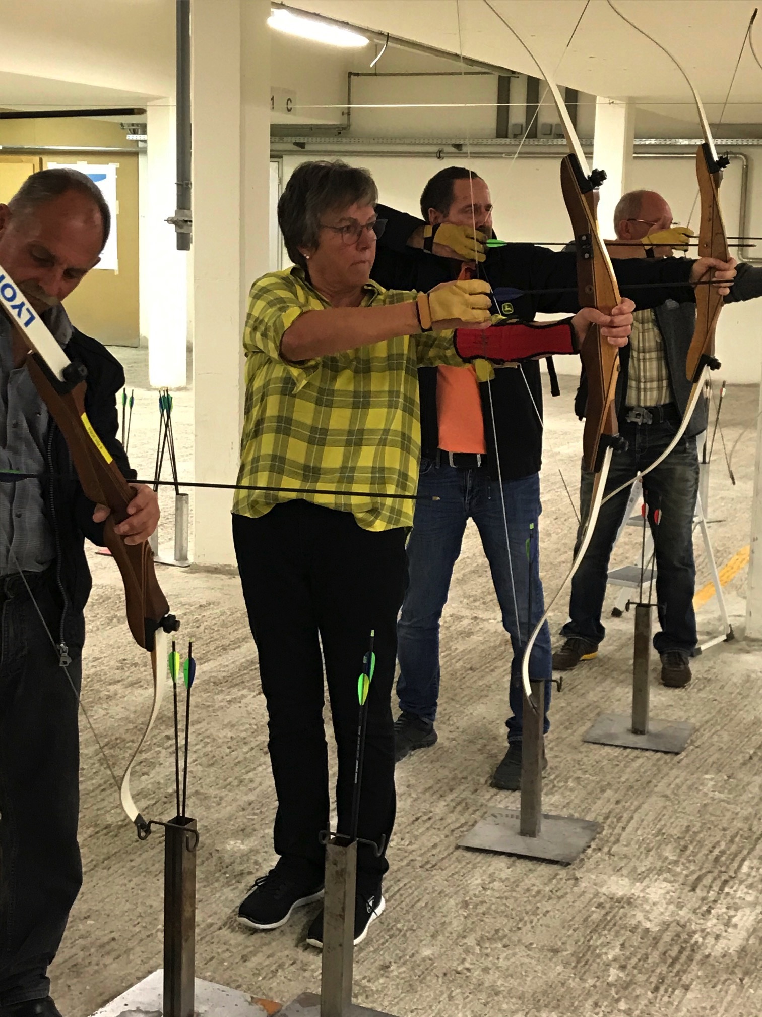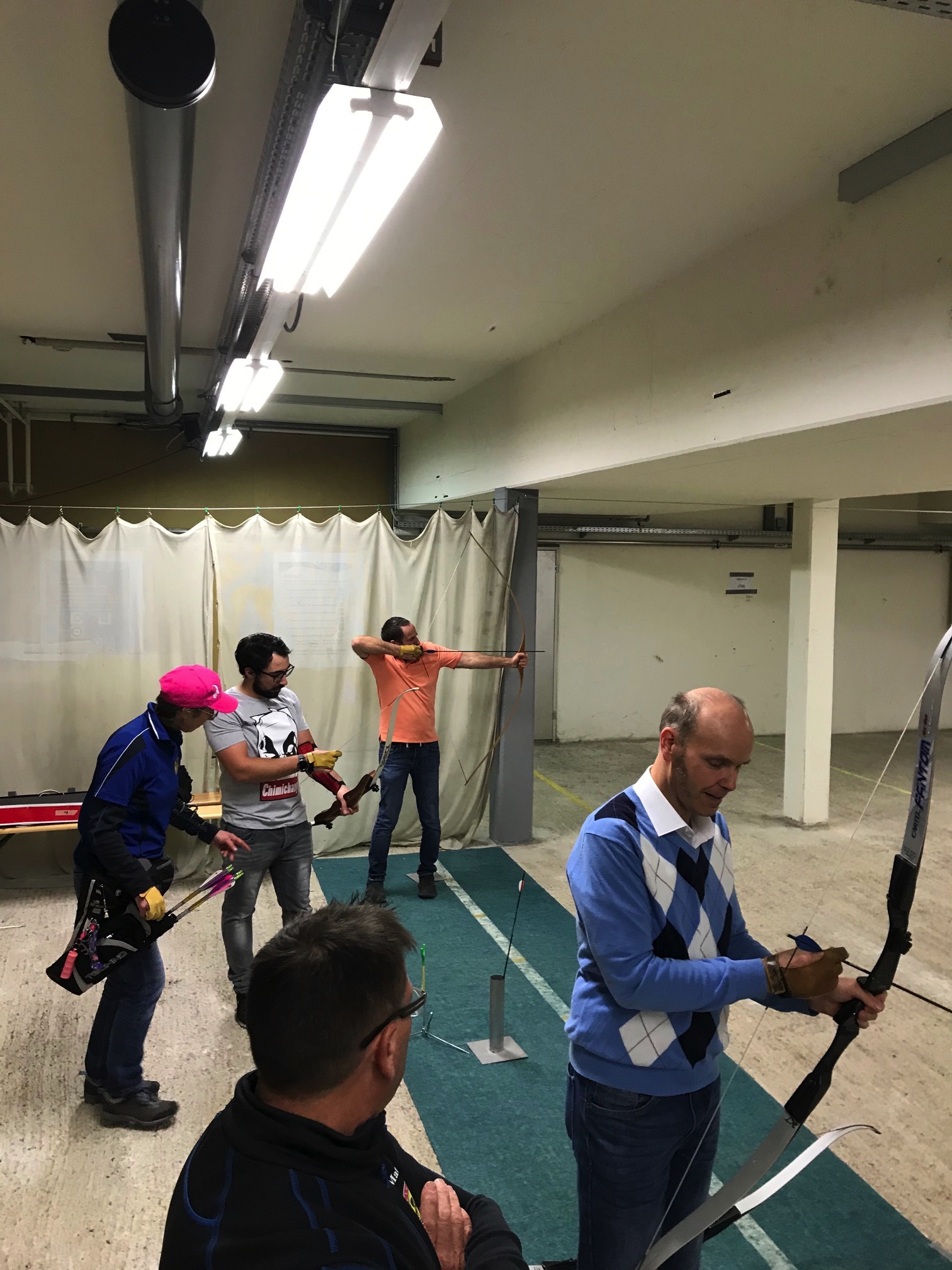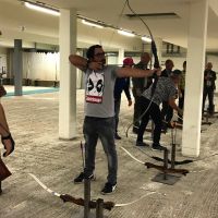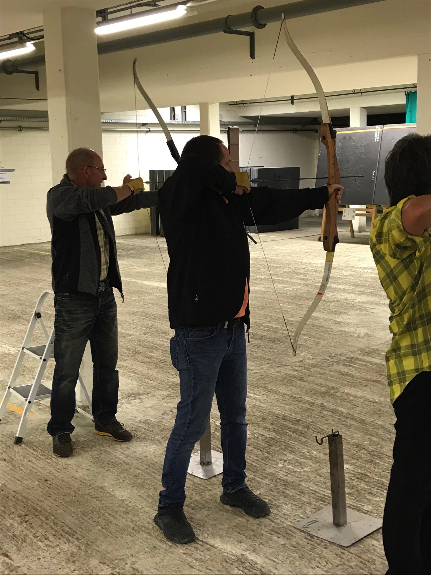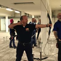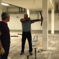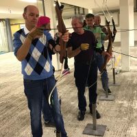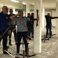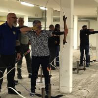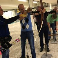 Bogenschiessen mit den Mitarbeitern im Trainingskeller des Bogenclub Thurland in Wängi anlässlich des Geschäftsessens 2019.