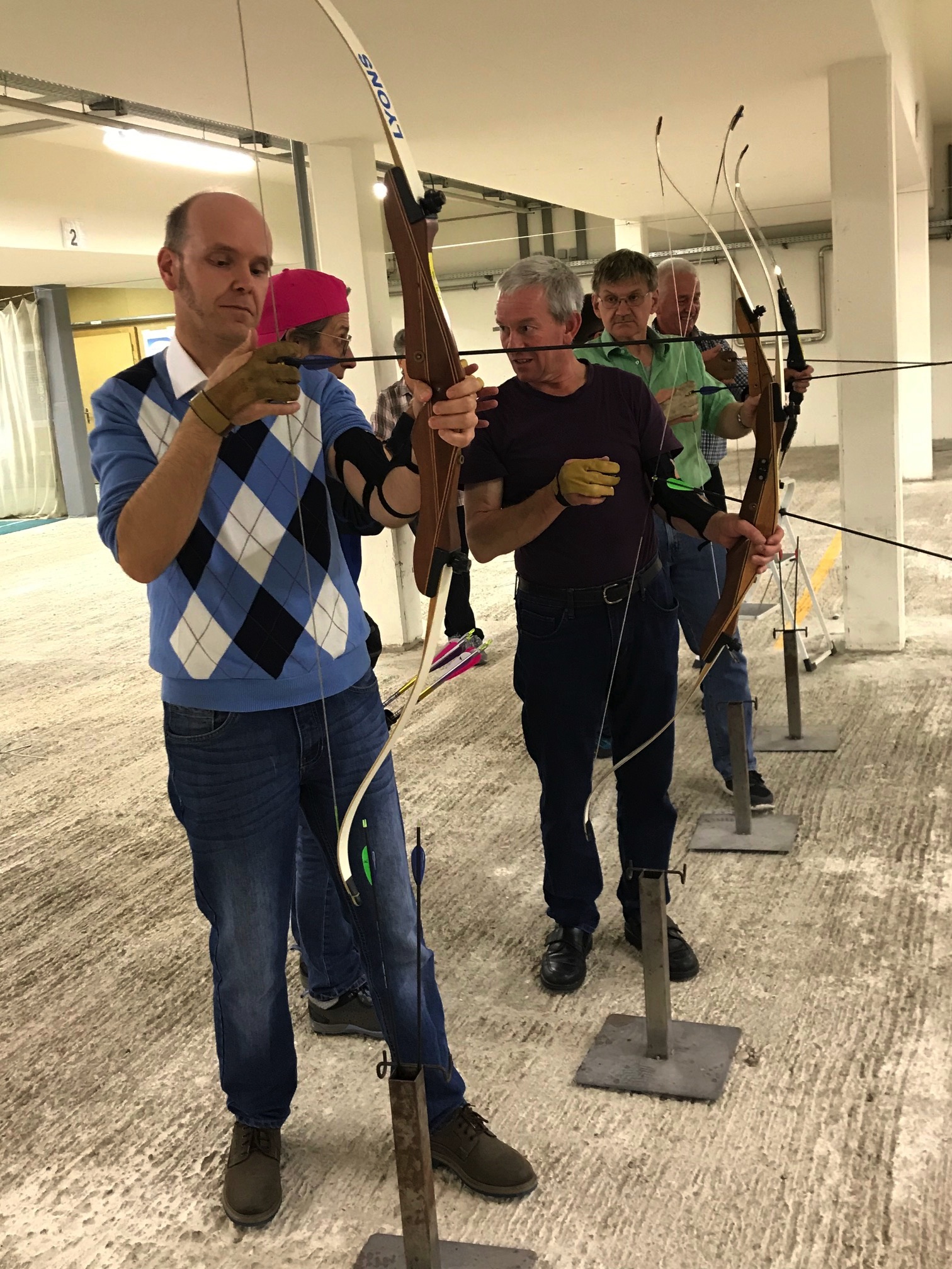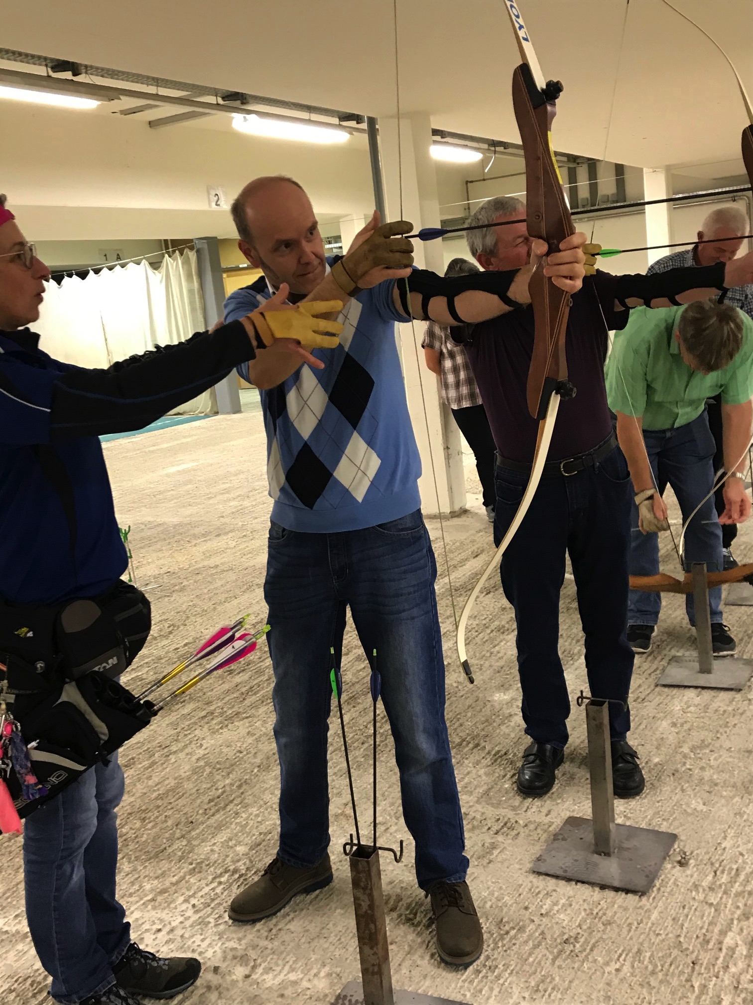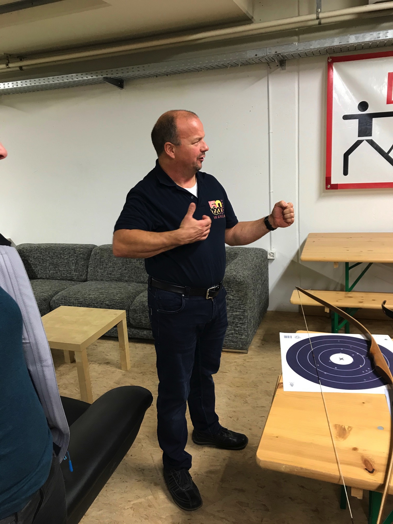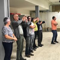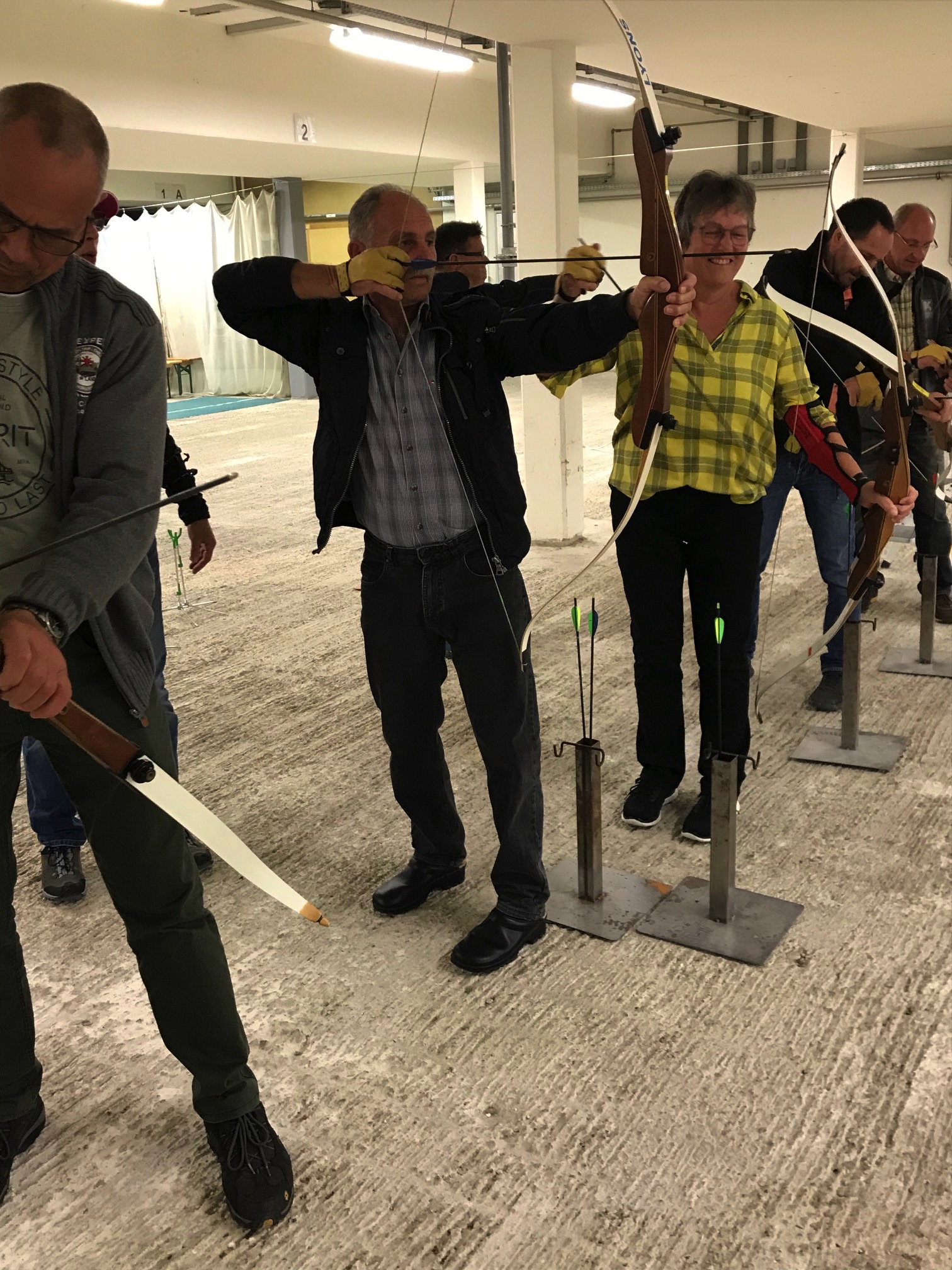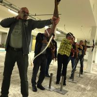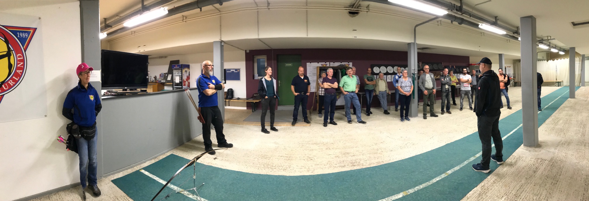 Bogenschiessen mit den Mitarbeitern im Trainingskeller des Bogenclub Thurland in Wängi anlässlich des Geschäftsessens 2019.
