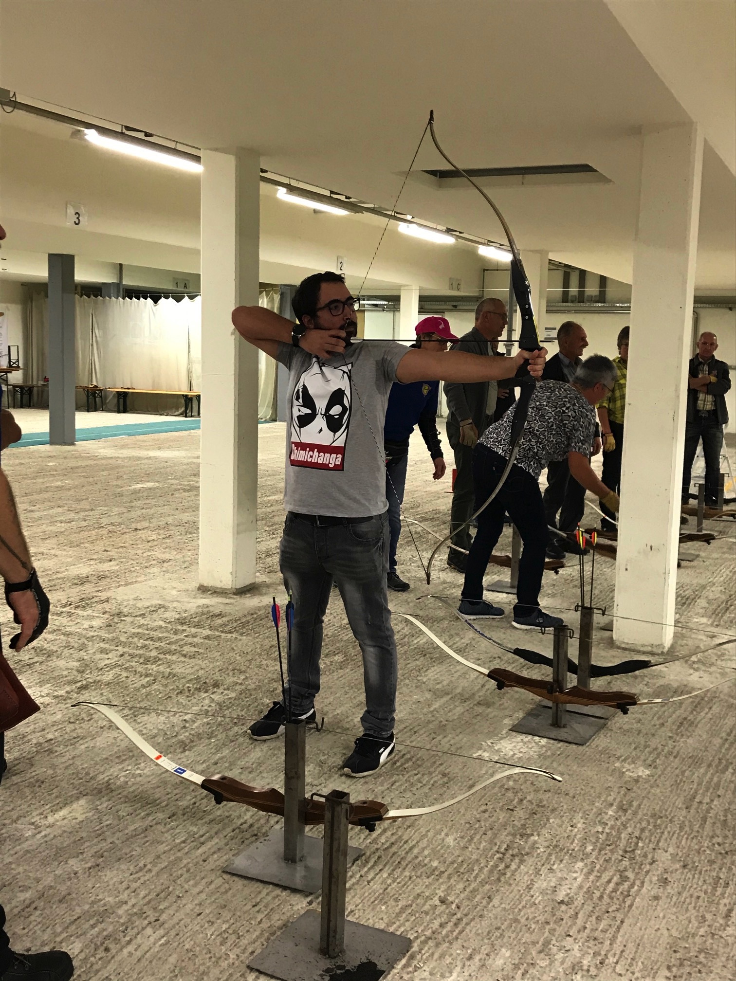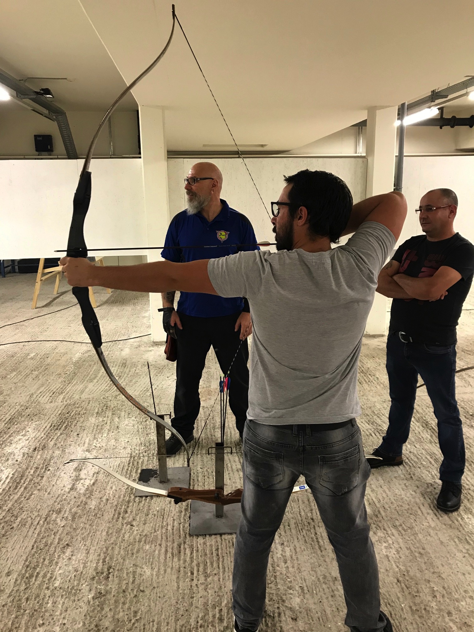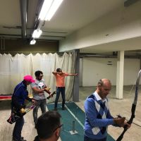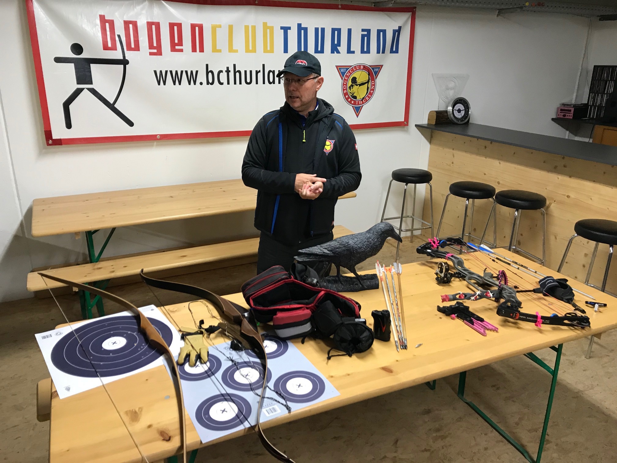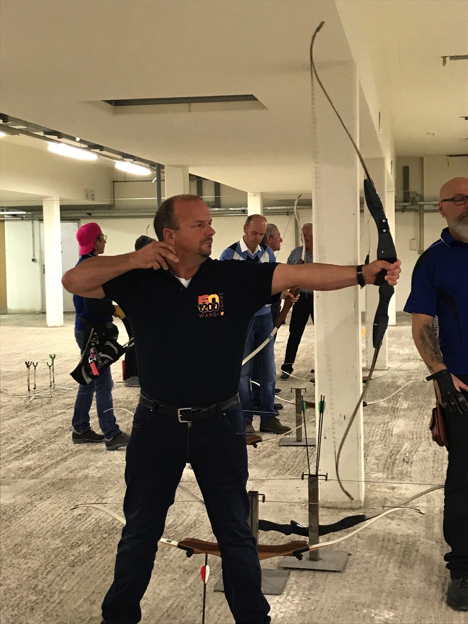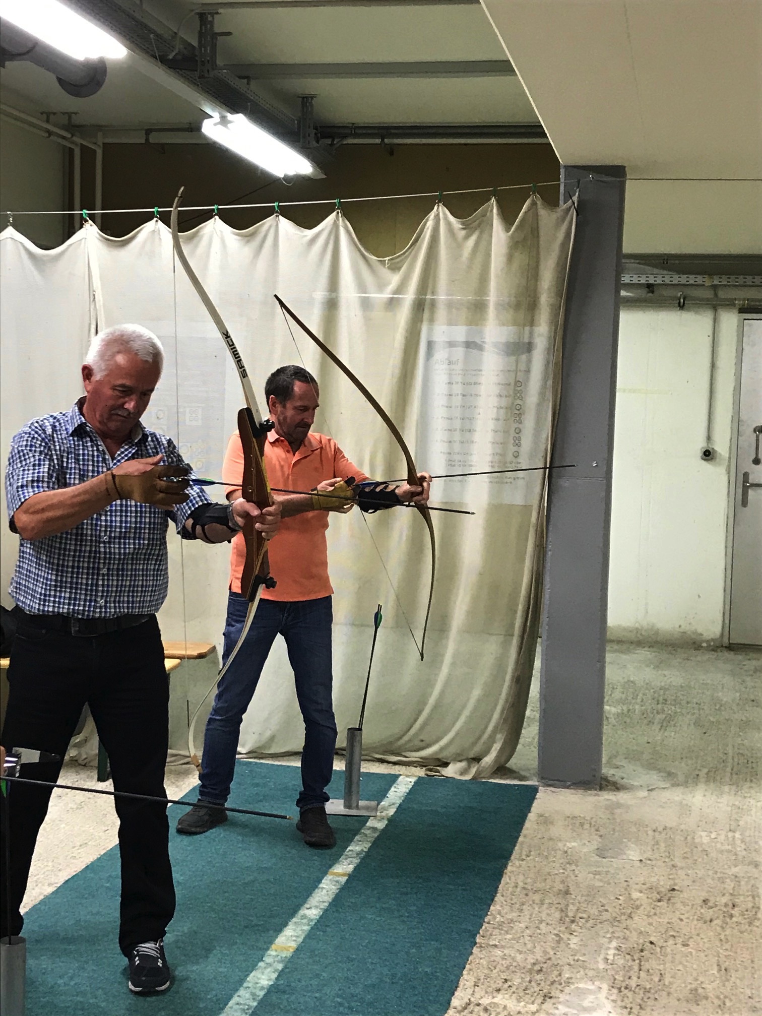 Bogenschiessen mit den Mitarbeitern im Trainingskeller des Bogenclub Thurland in Wängi anlässlich des Geschäftsessens 2019.