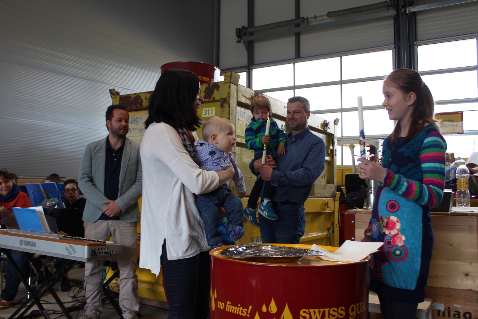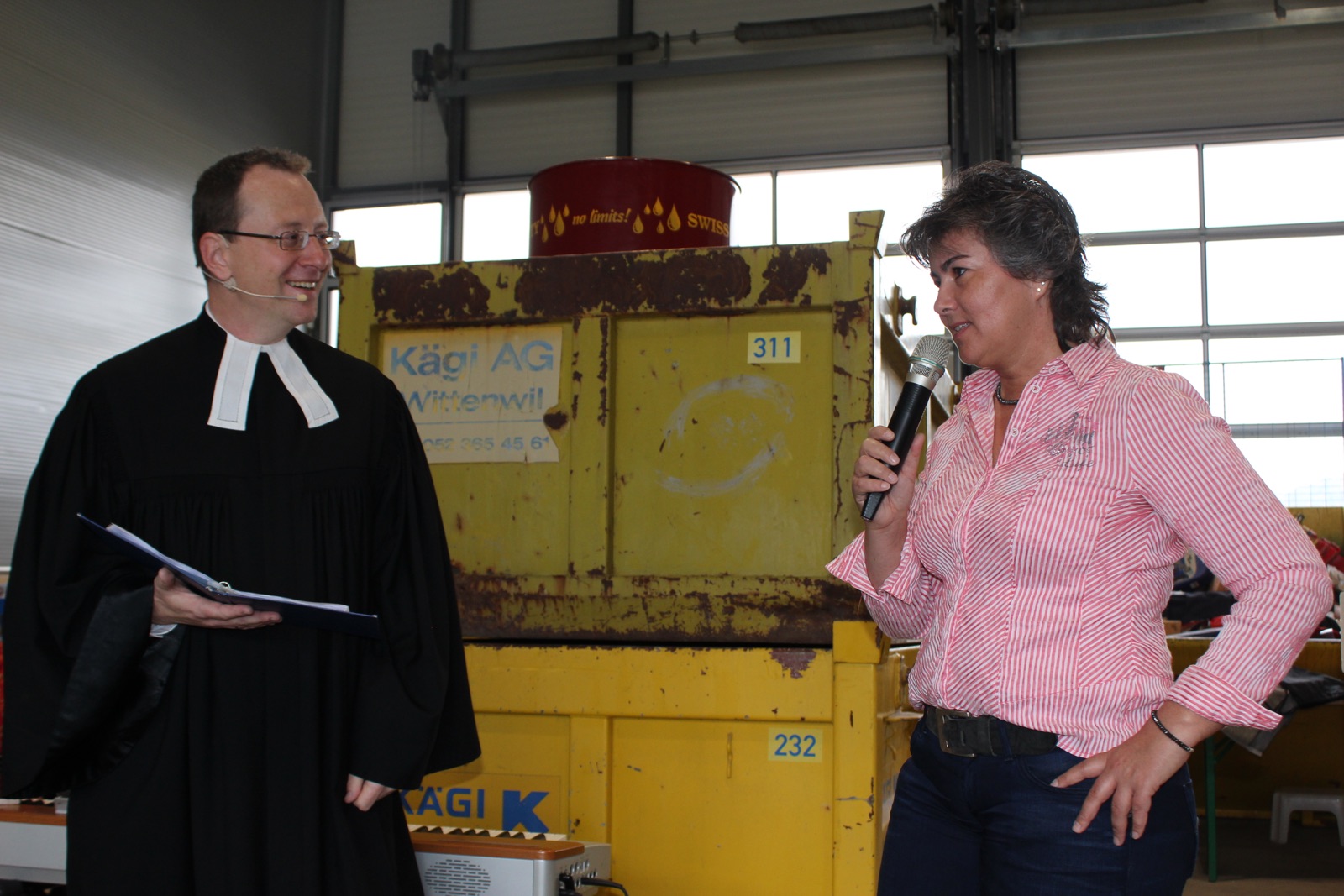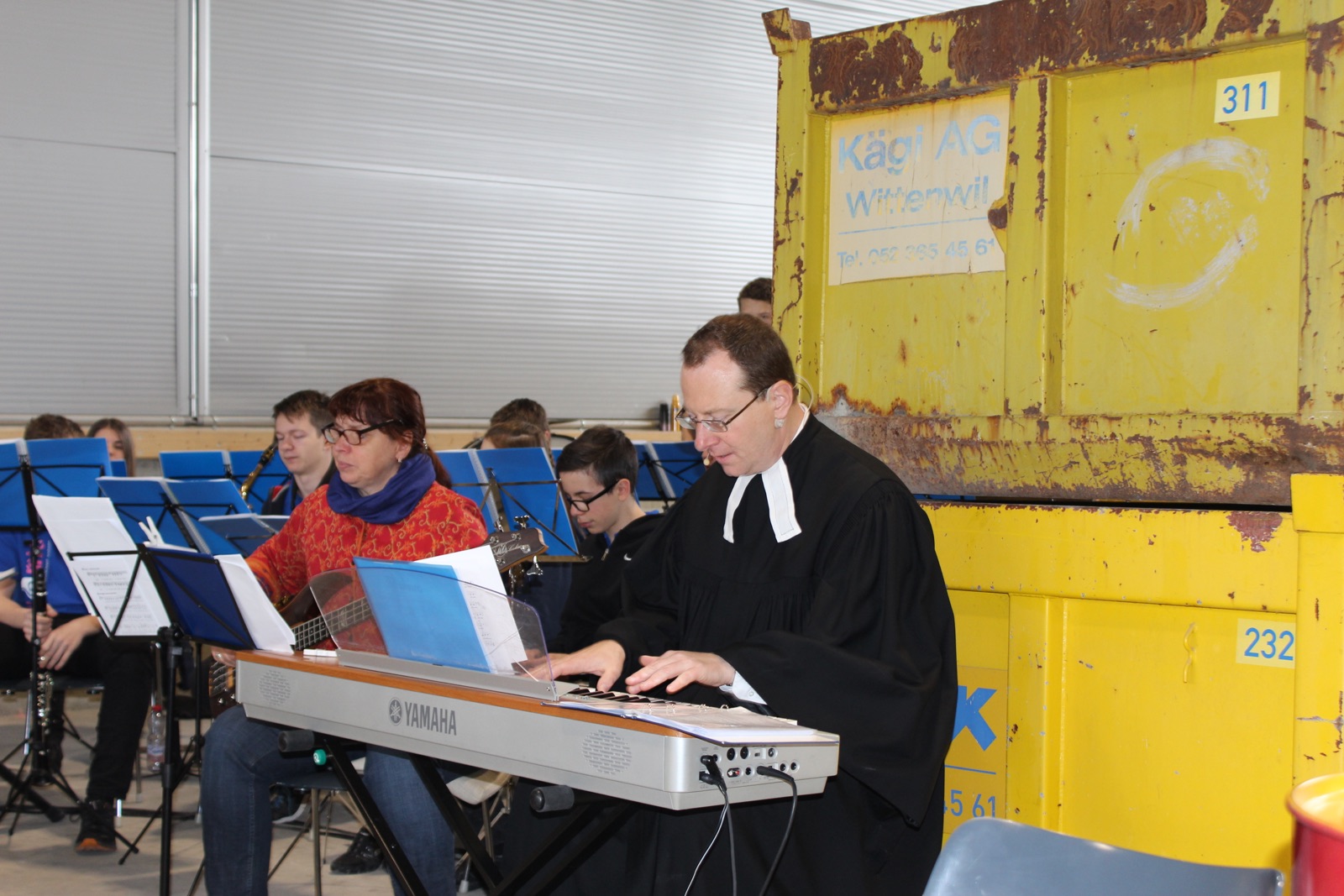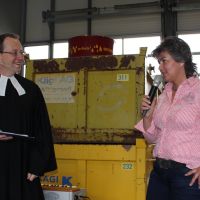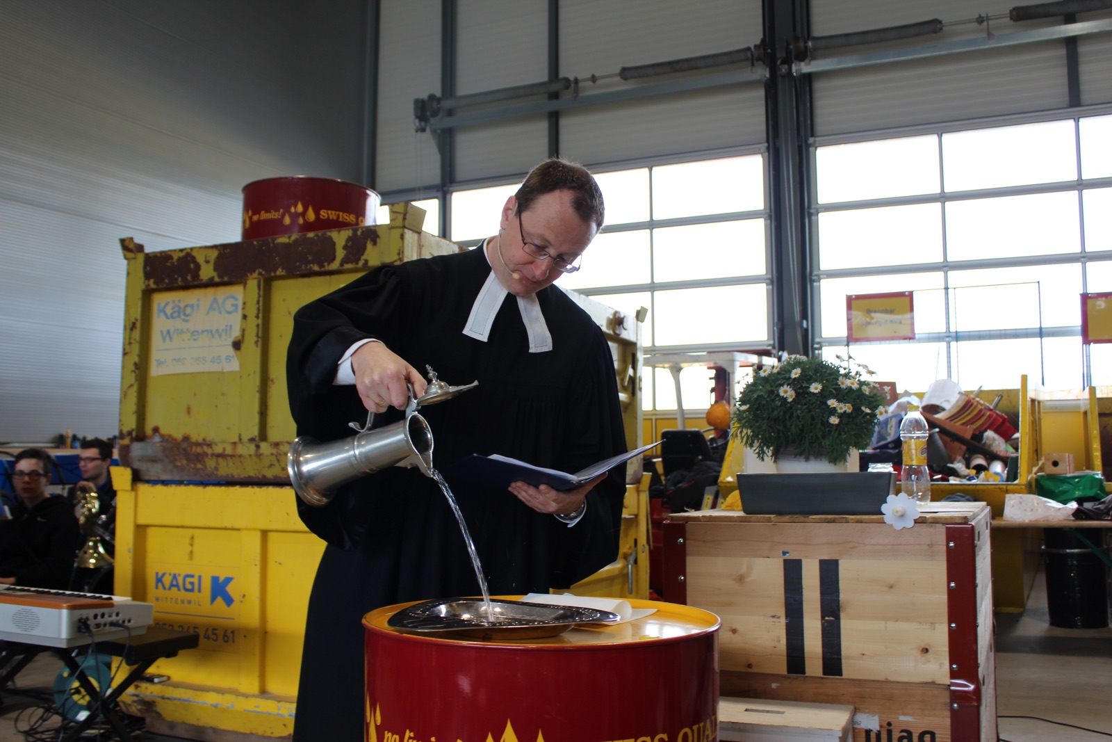Die evangelische Kirche Aadorf tauschte für einmal ihre gewohnte Umgebung mit dem Sammelhof in Aadorf der Firma Kägi. Sie feierten den Sonntagsgottesdienst zwischen Pet-Flaschen, Aluminiumdosen und leeren Batterien.