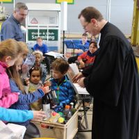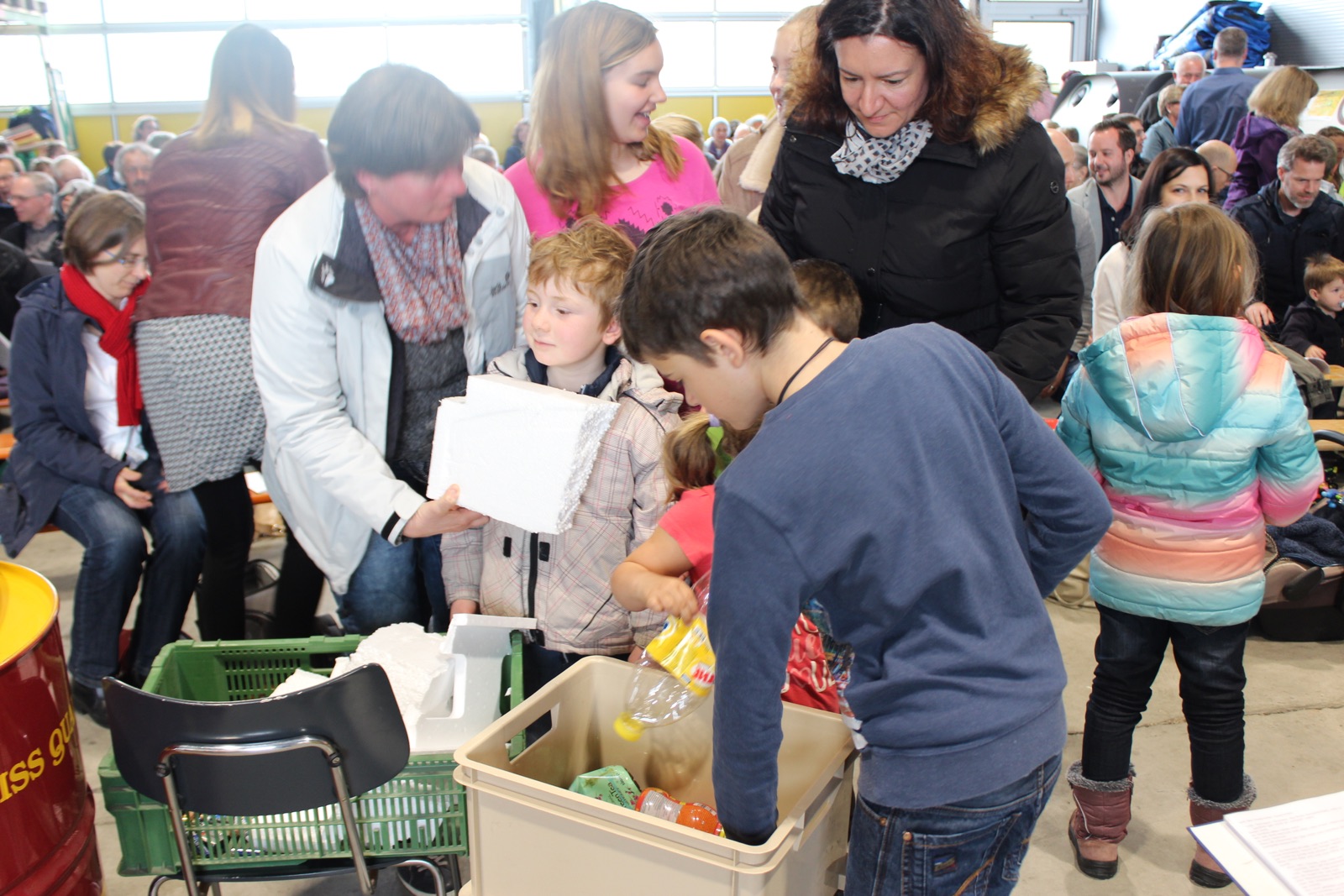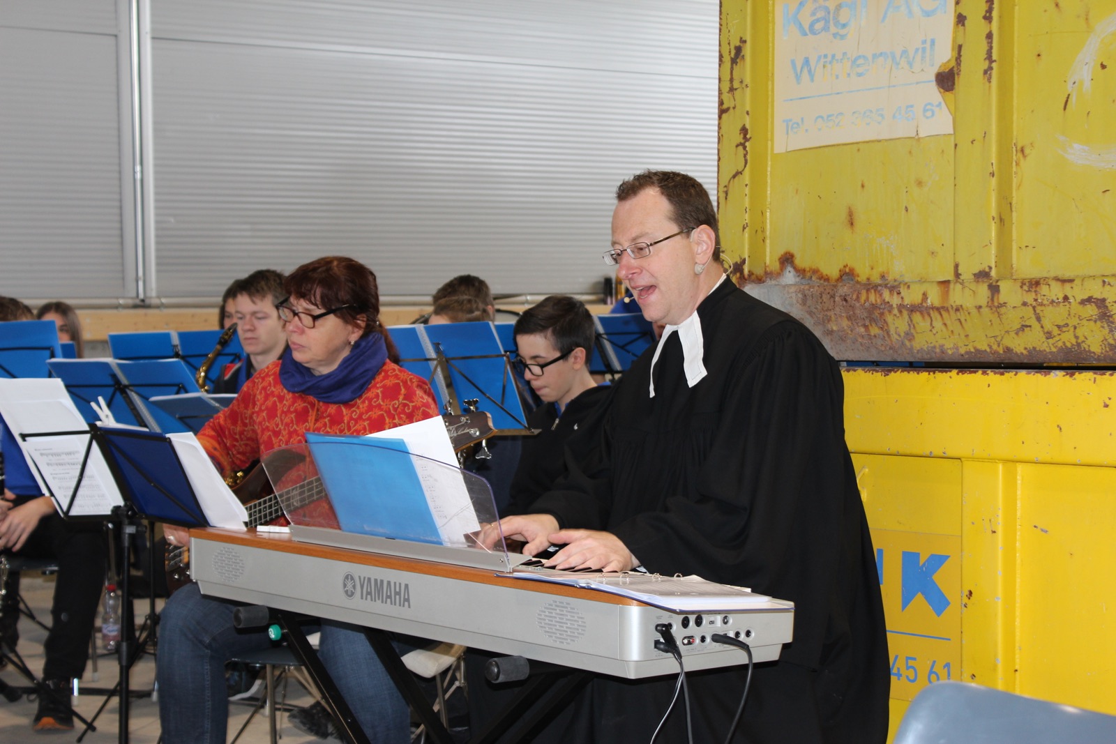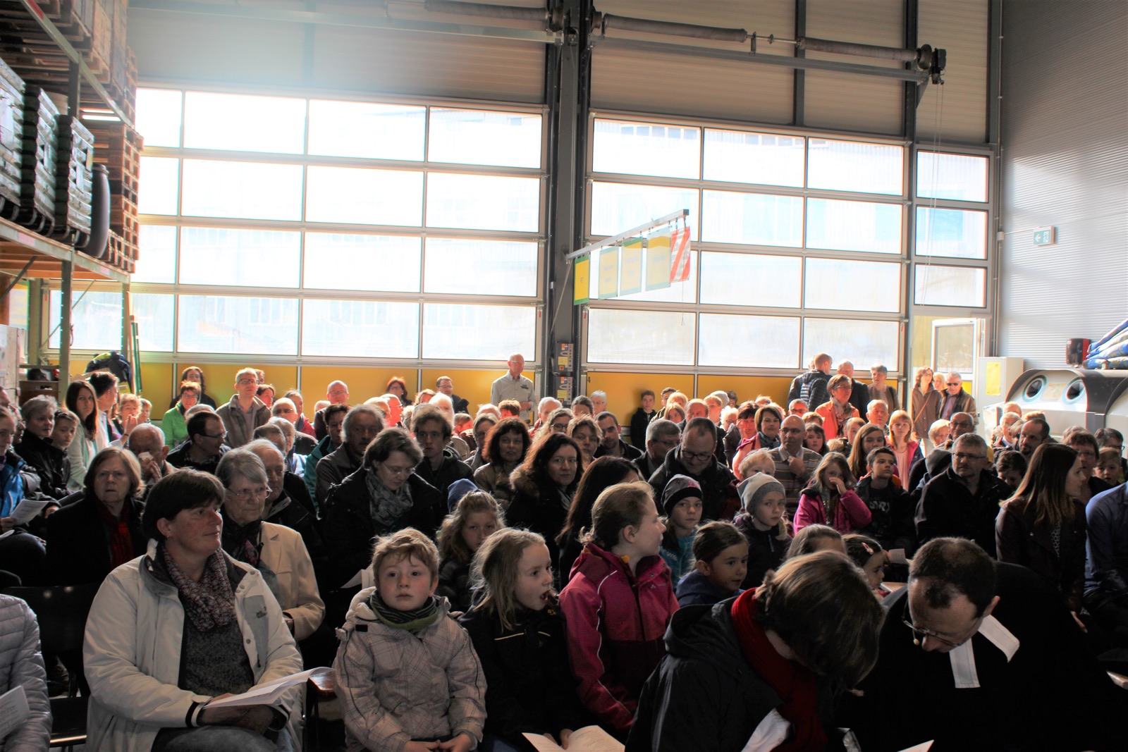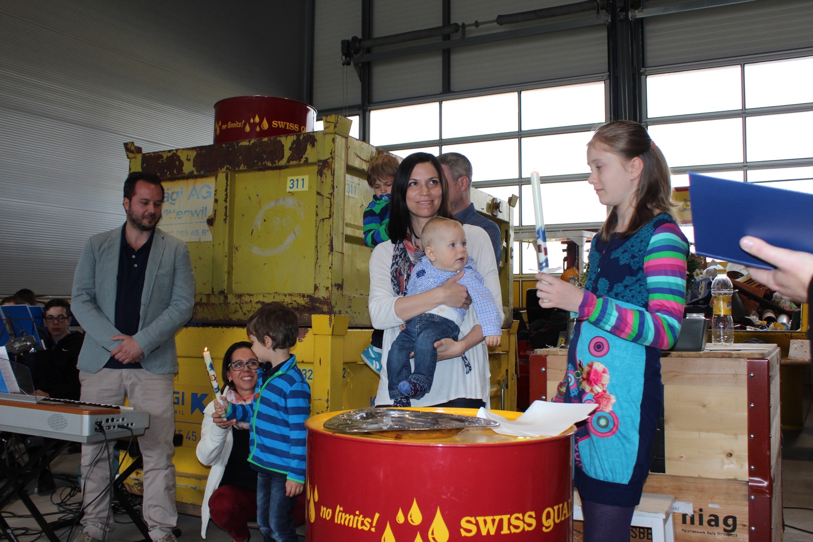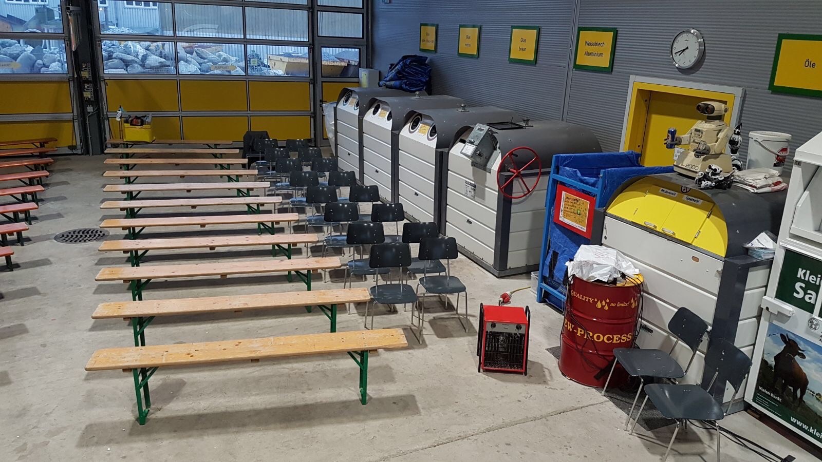 Die evangelische Kirche Aadorf tauschte für einmal ihre gewohnte Umgebung mit dem Sammelhof in Aadorf der Firma Kägi. Sie feierten den Sonntagsgottesdienst zwischen Pet-Flaschen, Aluminiumdosen und leeren Batterien.
